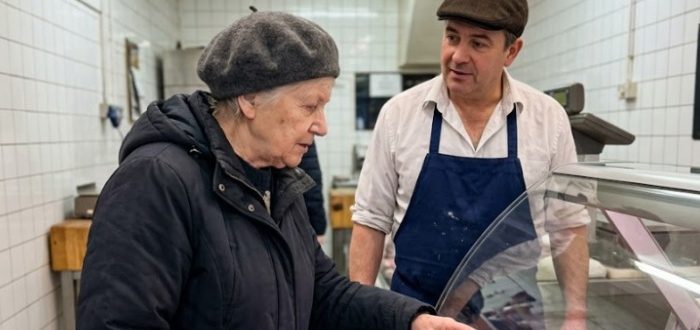 Niska, sitna i pomalo pogrbljena umirovljenica svaki je dan ulazila u istu klaonicu. Nosila je stari kaput i vukla istrošena kolica s kotačima koji su škripali pri svakom
