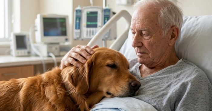 U njegovim nogama ležao je zlatni retriver sa zlatnim krznom po imenu Riccardo. Živio je s njim posljednjih nekoliko godina. Kad je čovjek primljen u bolnicu, liječnici su isprva odbili dopustiti psa, ali mladi liječnik je inzistirao – ponekad, rekao je, određene stvari pomažu više od bilo kojeg lijeka.