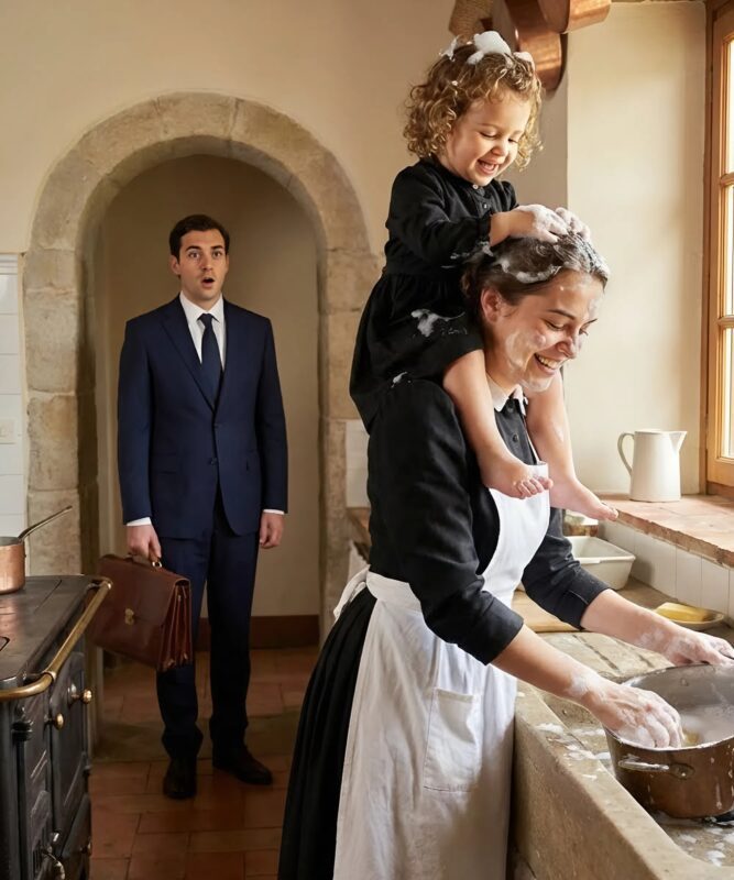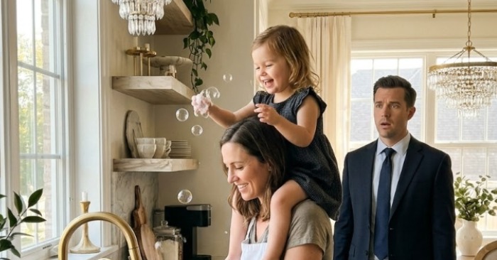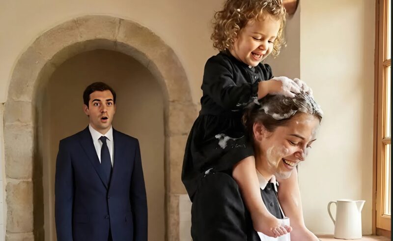 Lily je sjedila na Sophienim ramenima, njihova kućna pomoćnica. Zajedno su prale suđe, voda s pjenom svjetlucala je u svjetlu lampe. I Lily… smijala se – jasno, glasno, baš kao što je to nekad činila. Marc nije čuo taj smijeh mjesecima.
