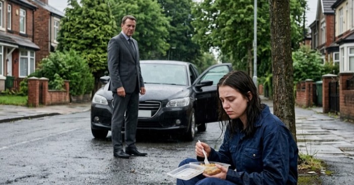 Tog jutra, nebo je bilo teško od sivih oblaka, a grad je tek počeo tonuti u stalnu kišu. Ispred ogromne vile, okružene uredno podšišanim živicama i mramornim fontanama, žena u izblijedjeloj plavoj uniformi sjedila je ispod drveta. Mokra kosa lijepila joj se za lice, a ruke su joj drhtale dok je pokušavala jesti iz jeftine plastične posude. Kiša je padala jače, miješajući se s njezinim suzama. Ipak, ostala je mirna, ne tražeći sklonište. Hrana joj je bila natopljena, odjeća joj se lijepila za tijelo, a vitka figura drhtala je od hladnoće i iscrpljenosti. Izgledala je kao netko tko je odavno zaboravio značenje udobnosti.