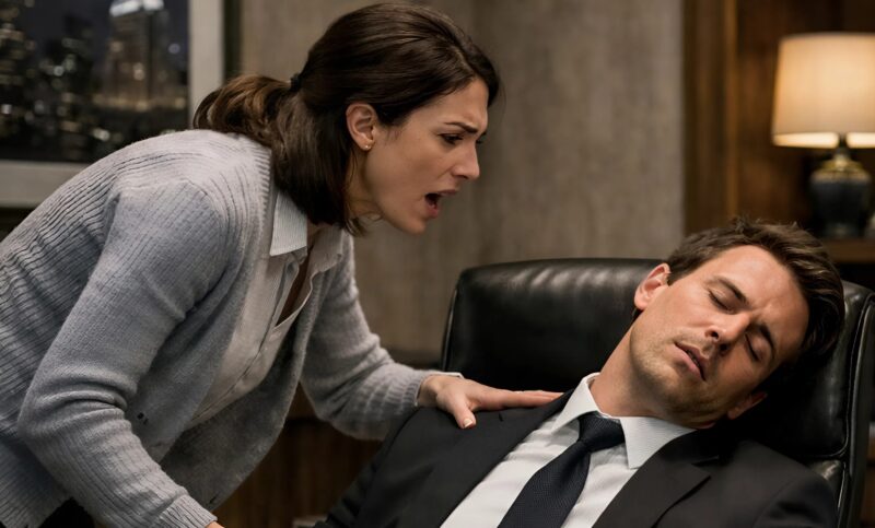 Nakon trenutka, otvorio je oči, pretvarajući se da je upravo došao svijesti. Emma se odmah vratila u ured, ponovno mu provjerila puls i predložila da pozove hitnu pomoć.