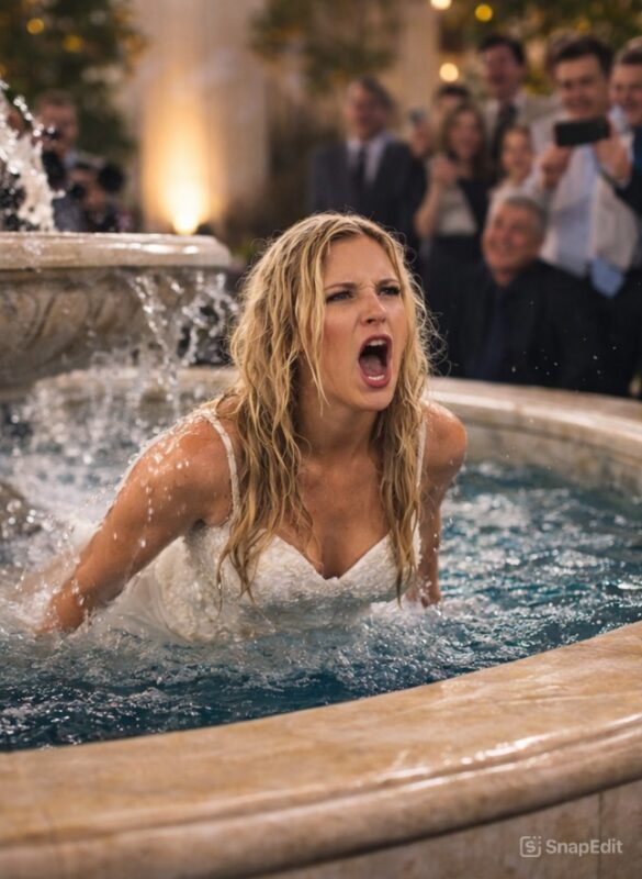 Mlada je odjednom izgubila ravnotežu i nije imala vremena reagirati. U djeliću sekunde već je padala. Začuo se pljusak, voda se raspršila posvuda, gosti su se trznuli, a glazba je kao da je odjednom prestala. Haljina je odmah upila vodu i postala teška, kosa joj je uništena, šminka razlivena. Sve u što je uložila toliko vremena, truda i novca uništeno je u trenutku.