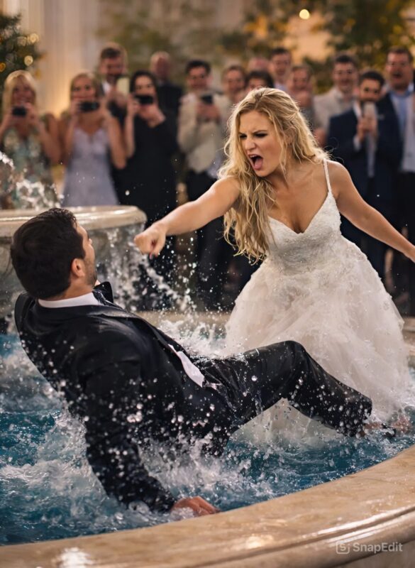 Mladoženja nije imao ni vremena shvatiti što se događa. Trenutak kasnije, bio je u fontani, natopljen, a skupocjeno odijelo mu se odmah prilijepilo uz tijelo.
