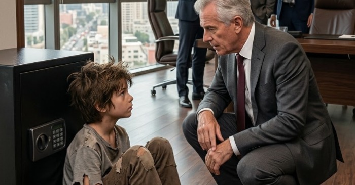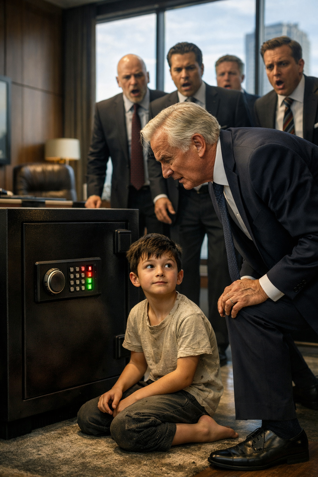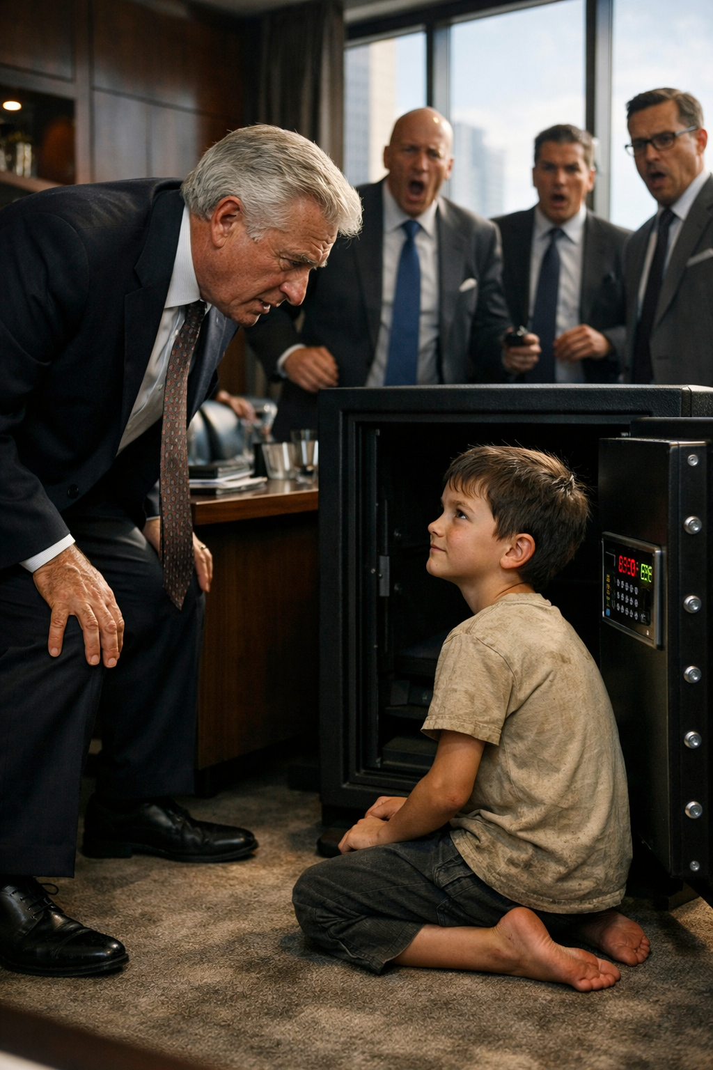 Milijarder na čelu stola prvi je primijetio dječaka. Zavalio se u stolicu i promatrao prizor s blagom zabavom, kao da mu je sastanak iznenada pružio neočekivanu zabavu.