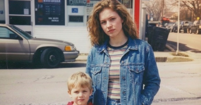 Na fotografiji je mali Eric stajao pored žene — svoje biološke majke. U pozadini se vidio znak vrlo sličan onome koji je sada visio na benzinskoj.
