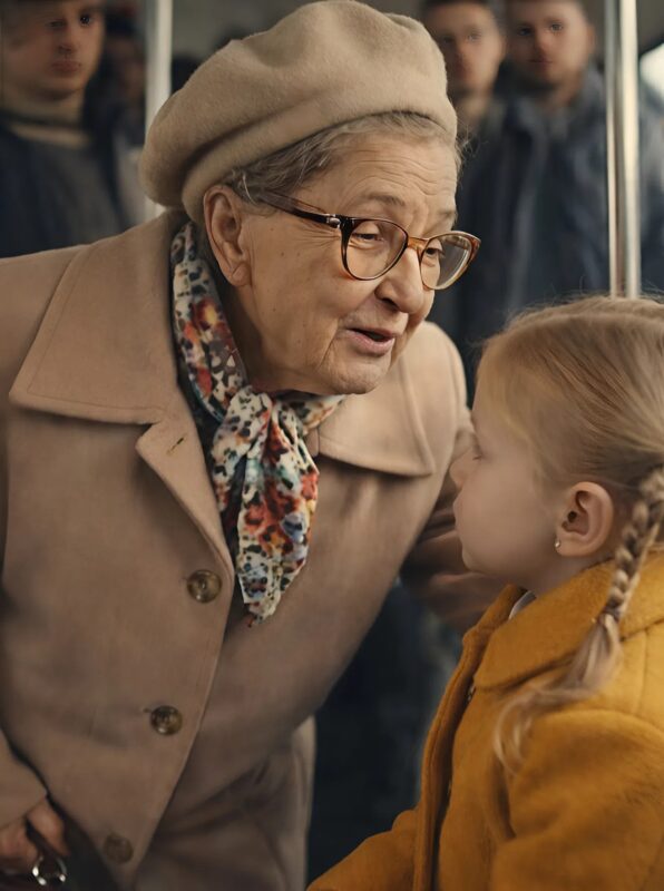 Na jednoj od stanica, vrata su se s mukom otvorila i polako je ušla starija žena. Imala je oko sedamdeset godina. Nosila je lagani kaput, uredan šešir i naočale s tankim okvirima. Nosila je malu torbicu. Bilo je očito da se muči održati ravnotežu – pažljivo se provlačila između putnika, čvrsto se držeći za metalnu ogradu.